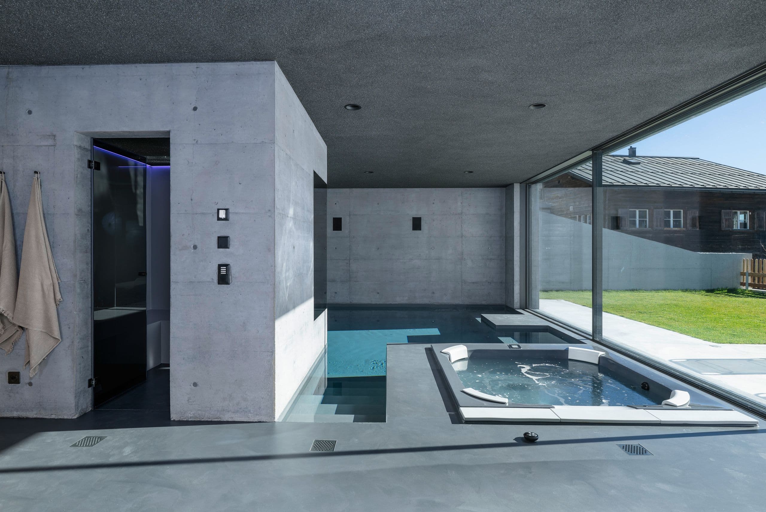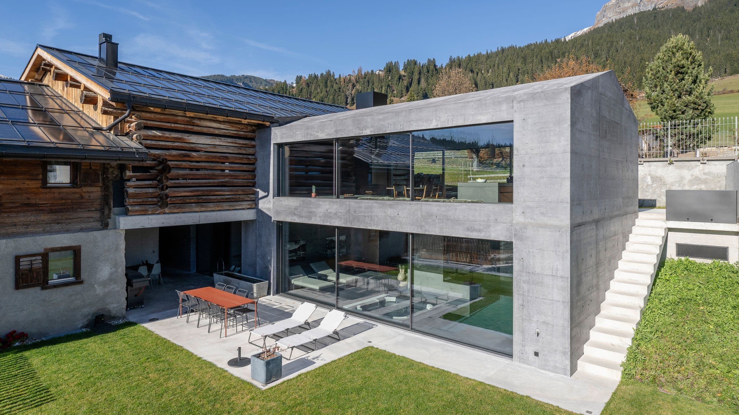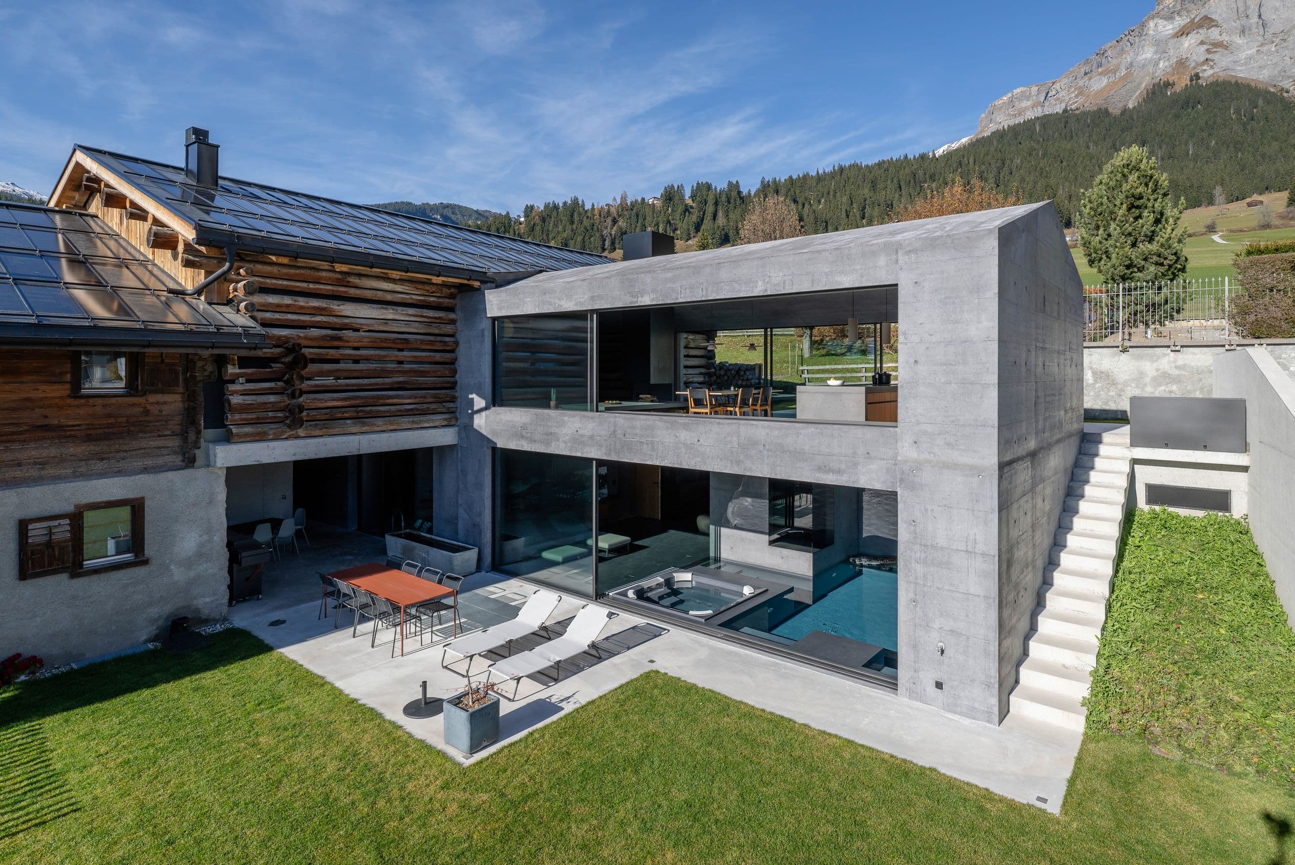 Im historischen Dorfkern von Flims galt es, ein anspruchsvolles Ensemble zu vervollständigen: Ein Wohnhaus aus dem 17. Jahrhundert, ein Stall von 1826 und ein moderner Neubaukörper mussten zu einer architektonischen Einheit verschmolzen werden. Die Herausforderung der Fensterplanung lag im Umgang mit der historischen Substanz bei gleichzeitigem Wunsch nach grosszügigen Wohngefühl. Im Zentrum stand das Zusammenspiel der rahmenlosen Verglasungen und Schiebeelemente mit dem bestehenden Hausteil und dem modernen Neubau.